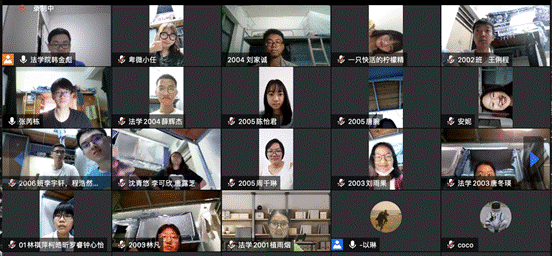 互动答疑环节,同学们畅所欲言、虚心向师兄师姐请教,两位优秀毕业生代表详尽地解答了同学们提出的问题。最后是合影留念环节,优秀毕业生代表、各年级辅导员以及参会同学纷纷打开摄像头,记录下家国团圆之夜的美好时刻。