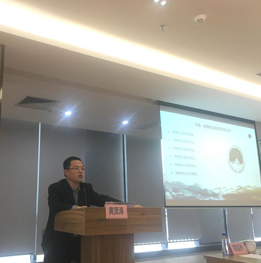 黄贤涛主任从五个方面讲授“地理标志培育运营保护与区域经济高质量发展”:一是基础知识:老字号,新地标。他介绍了欧盟、中国地理标志的定义以及相关农产品的地理标志,并指明了欧美国家关于地理标志的争端。二是面临形势:小地标,大产业。他指出,我国持续强化地理标志保护和运用,地理标志将成为特色产业发展风向标。三是保护现状:广东地标二十年。他主要从地理标志的保护数量、类型、年度分析、地域分布、行业分布、专用标志和产业规模来分析。四是当前重点:完成六大任务促进我国农村发展,助力农村脱贫攻坚。他强调,用好专用标志是助力“三农”,实现乡村振兴的关键。五是发展展望:复兴海上丝绸之路。他指出特色产业有望成为新的经济增长点,地标贸易将改变全球特色产业格局。