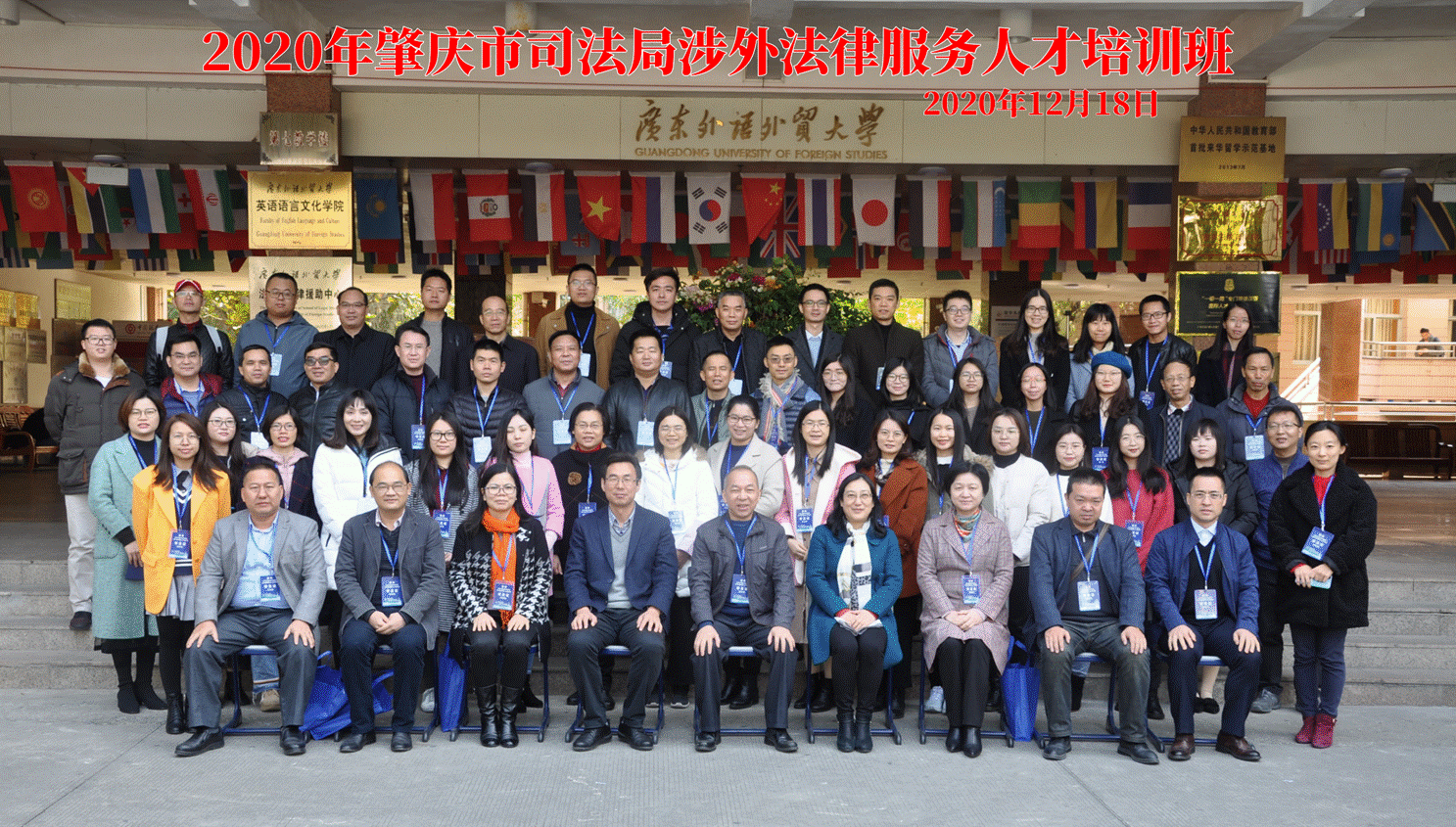12月18-20日,由肇庆市司法局主办、广东涉外法治人才教育培训基地承办的2020年肇庆市司法局涉外法律服务人才培训项目在广东外语外贸大学北校区举办。来自肇庆市司法局、肇庆市律师协会等部门共计60人参加培训。