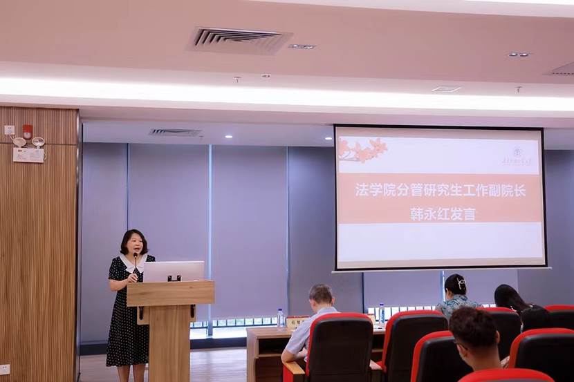 8月29日,法学院2022级研究生入学教育大会在知识城校区进德楼305第一学术报告厅顺利召开。法学院党委书记杨敏生、法学院副院长韩永红、法学院党委副书记刘军、法律硕士教育中心主任兼研办主任吴贤静、研究生教务员陈泽萍、研究生辅导员刘运宇、陈珂、苏杭以及法学院2022级全体研究生参加了会议。会议由刘军主持。
