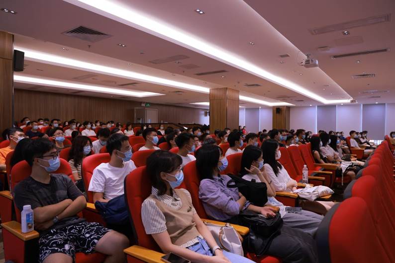韩永红教授向入学的各位新生提了三点建议。第一是要围绕核心能力的提升开展主动式学习。她指出,研究生阶段的学习是不同于本科阶段的,要全面提升信息检索能力、写作能力以及跨文化沟通能力。第二是要重视时间。同学们务必树立良好的时间观念,全力以赴地学习,方能不负韶华。第三是要心中有他人,在当前竞争激烈的大环境之下,同学们更应当多多交流、互通有无,开展良性的竞争、互相陪伴成长。