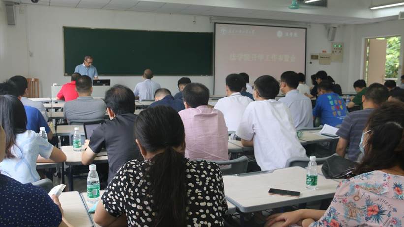 8月27日上午,法学院在南校区D212召开新学期工作布置会。学院领导班子成员和法学学科专业全体教职工参加会议,会议由学院党委书记杨敏生主持。