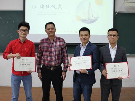 首先林茂辉上台致辞。他对各位校友的莅临表示欢迎,并介绍他们在工作上取得的卓越成就,对校友关心和支持母校的建设表示了感谢。随后,他为被聘任为创新创业导师的黄桂洪、陆昕及孙柱文颁发聘书。