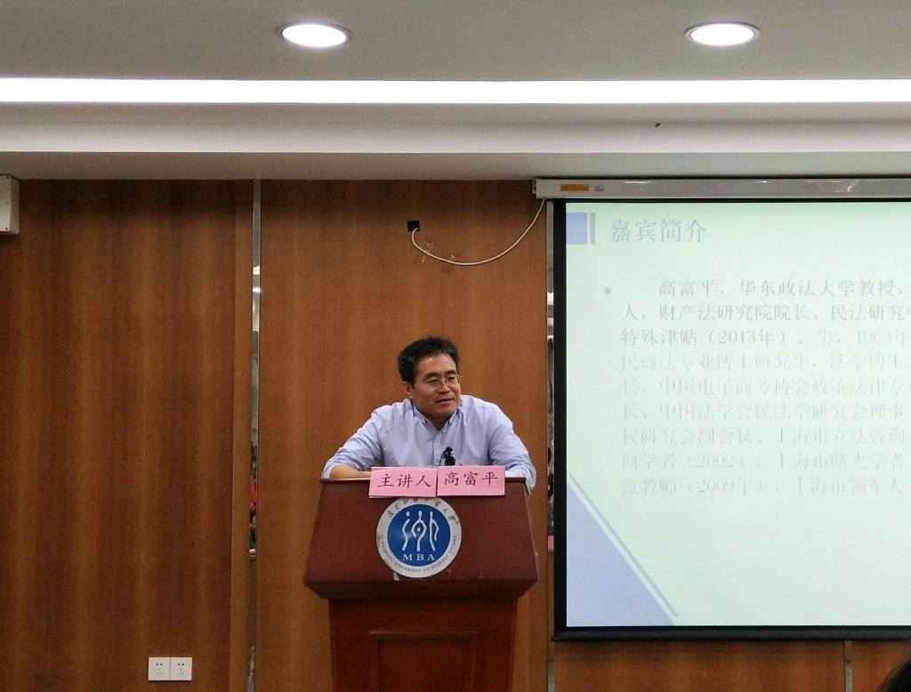 2017年11月10日下午,由广东外语外贸大学人事处、教师发展中心主办,土地法制研究院、法学院联合承办的著名教授论坛第341讲“土地制度改革与民法典编撰”在广东外语外贸大学北校区MBA教育中心(九教)306室开讲。此次论坛由中南财经政法大学法学院教授、博士生导师、《法商研究》编辑部常务副主编温世扬教授主讲。华东政法大学高富平教授、刘竞元教授,广东外语外贸大学土地法制研究院院长陈小君教授、副院长高飞教授,广东外语外贸大学法学院王荣珍教授、向明华教授等近百名师生参加论坛。论坛由土地法制研究院副院长耿卓教授主持。