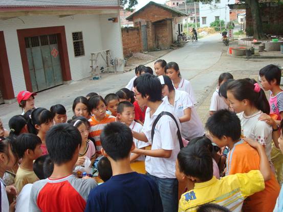 7月21日,法学院“大手拉小手”兴宁三下乡服务队来到鹅湖村村委会门前举行普法宣传活动。活动通过有奖问答、魔术表演等丰富新颖的宣传方式不仅让村民们对《婚姻法》、《劳动合同法》、《消费者权益保护法》等法律有了更深的了解,提高了法律意识,而且受到了鹅湖村村委的高度评价。