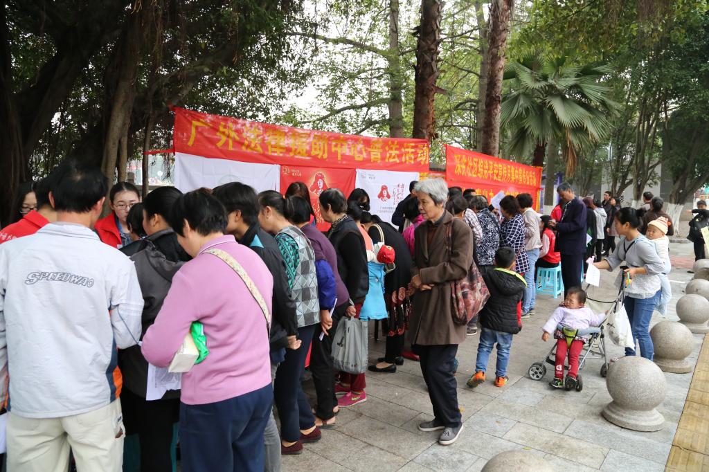 本网讯(文字:游伟文 摄影:游伟文 )2017年3月18日上午,广东外语外贸大学法律援助中心(以下简称“广外法援”)联手广州市黄埔区长洲街道深井社区居委会开展以“护航消费,普法先行”为主题的普法宣传活动。普法宣传活动与“3•15”国际消费者权益日相呼应,以维护消费者的合法权益、增强广大消费者的法律维权意识为目标。在深井社区居委会的大力支持和配合下,广外法援志愿者通过提供法律咨询服务、趣味游戏、有奖竞答、派发宣传手册等多种形式向当地居民普及了消费者权益保护法、婚姻法和劳动合同法等相关的法律知识,解决了当地居民的日常法律问题。