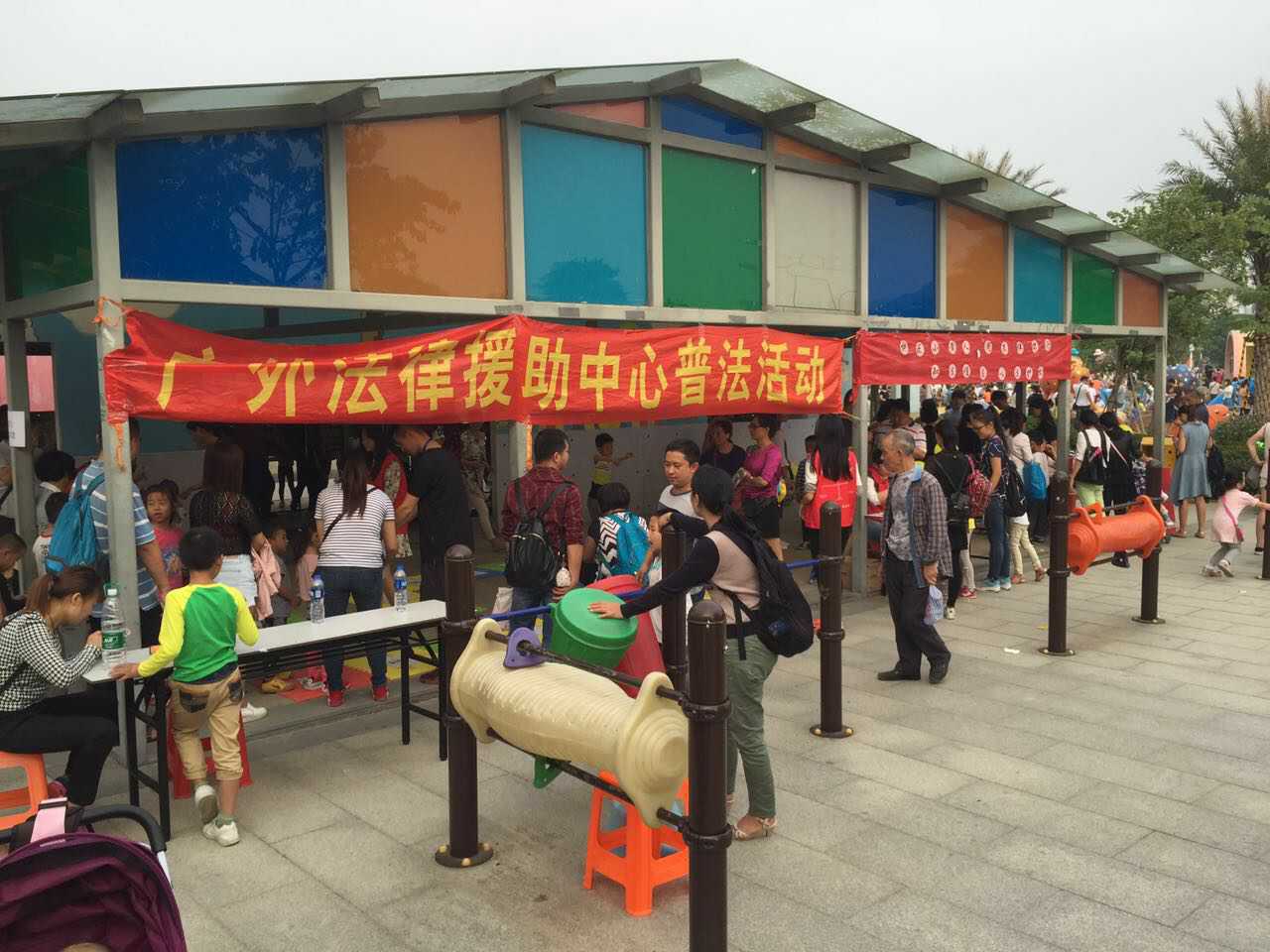 下午两点,法援志愿者来到儿童公园布置现场,准备开展普法活动。活动在三点正式开始。现场活动有游戏环节和法律咨询等等,过往游客积极参与活动,热情高涨,游戏摊位中聚集了大量亲子游客,奖品摊位摆放着精心准备的小礼物,受到儿童的喜爱。