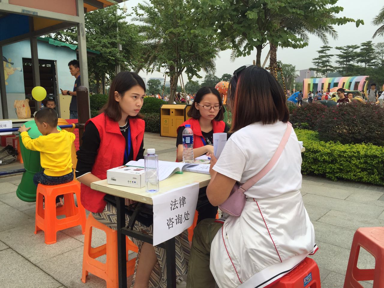 活动过程中,在游戏环节,小朋友和父母齐心协力,一起回答志愿者为他们设置的与法律相关的小问题,既促进了小朋友与父母之间的感情,也向他们普及了消费者权益保护法、道路交通安全法、未成年人保护法、婚姻法等相关的知识。在法律咨询摊位,不断有游客前来咨询法律问题,法援志愿者凭借自身的专业知识和实践经验,耐心向咨询者解答,帮助他们解决问题,咨询者也表达了对法援志愿者的感谢。