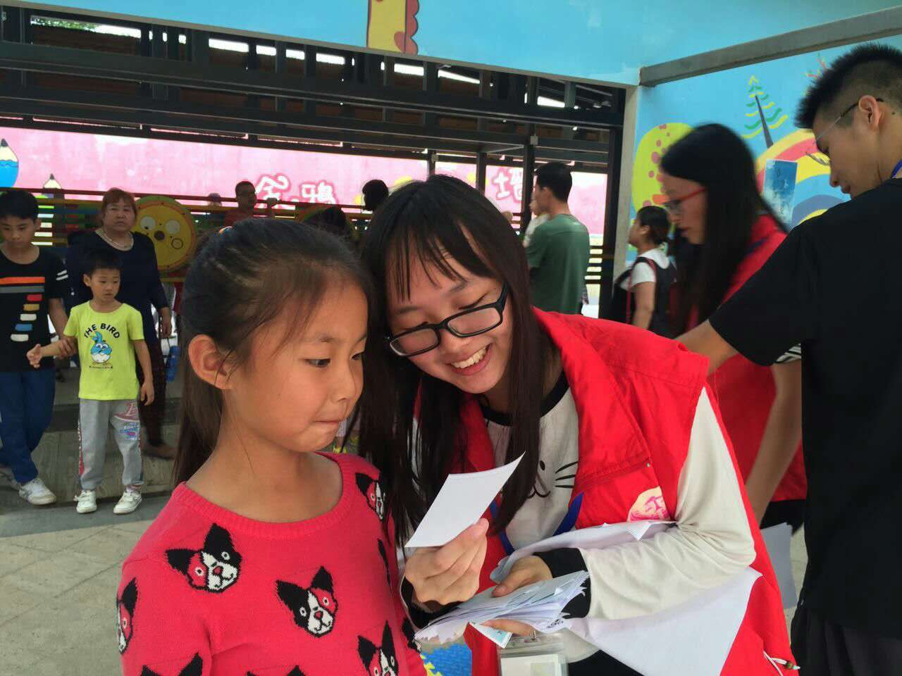 志愿者引导小朋友参与游戏