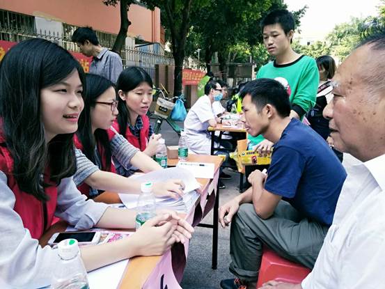 志愿者认真准备资料
