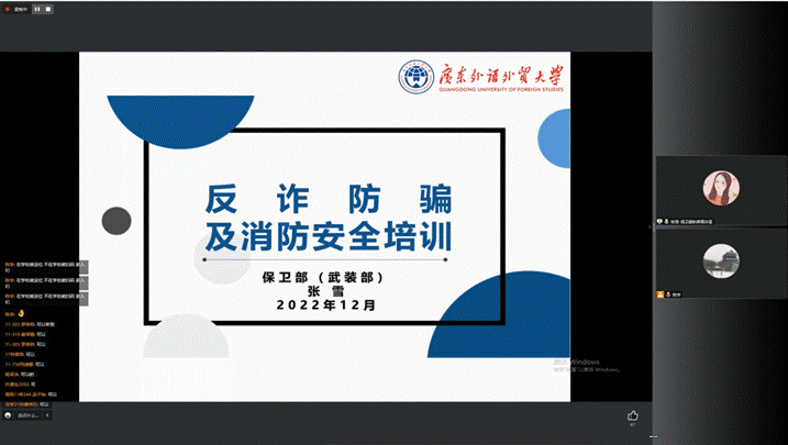 保卫部(武装部)张雪老师讲授了“防诈骗及宿舍安全消防培训”内容