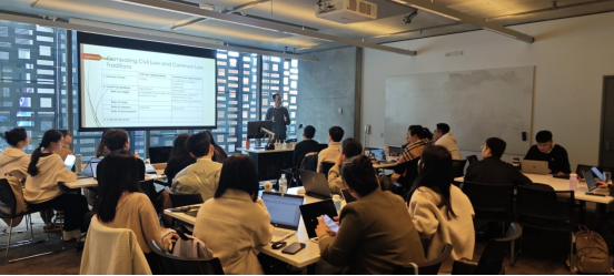 悉尼科技大学法学院副院长Grace Li教授的课堂上,老师组织同学们分组协作,讲述在学习中感受到的中澳法律制度差异和这几天的精彩故事。各小组汇报内容精彩纷呈,Grace Li教授一一回应,认真点评,首周课程环节圆满结束。