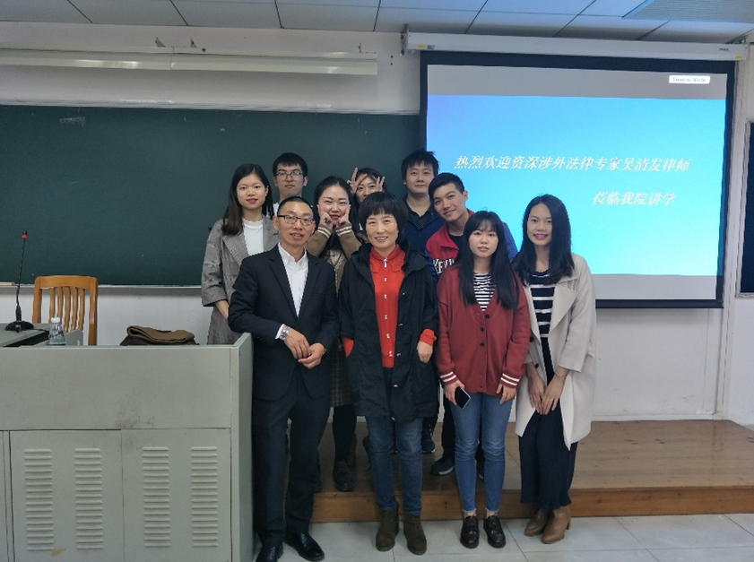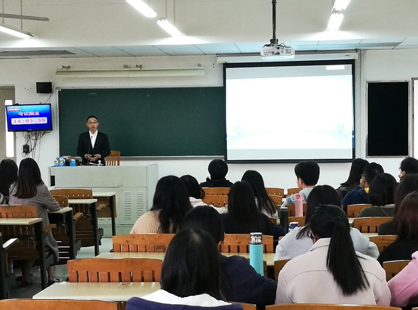 吴律师首先介绍了涉外法律业务的基本概况,并指出随着中国市场经济国际化程度不断加深,涉外法律业务的市场需求将不断提高以及呈现出多样化发展的趋势。接着,他从经济收入、兴趣爱好、个人能力、社会地位和责任等方面向同学们阐述了选择律师行业的原因,并且结合自身经验鼓励同学们积极面对就业竞争和压力。