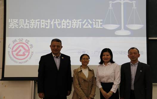 2019年12月31日上午,“立德树人、课程思政与专业课程交相辉映——坚持优良传统,讲好法治故事”之“民法实务讲座:紧贴新时代的新公证”讲座在F514进行,广州市公证处主任魏园园为学生做主题分享。本次讲座由龙著华教授主持,王荣珍教授、刘洪华副教授和法学院2018级全体本科生参加。