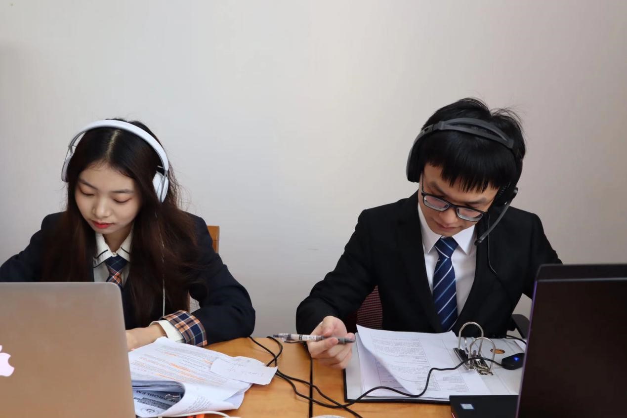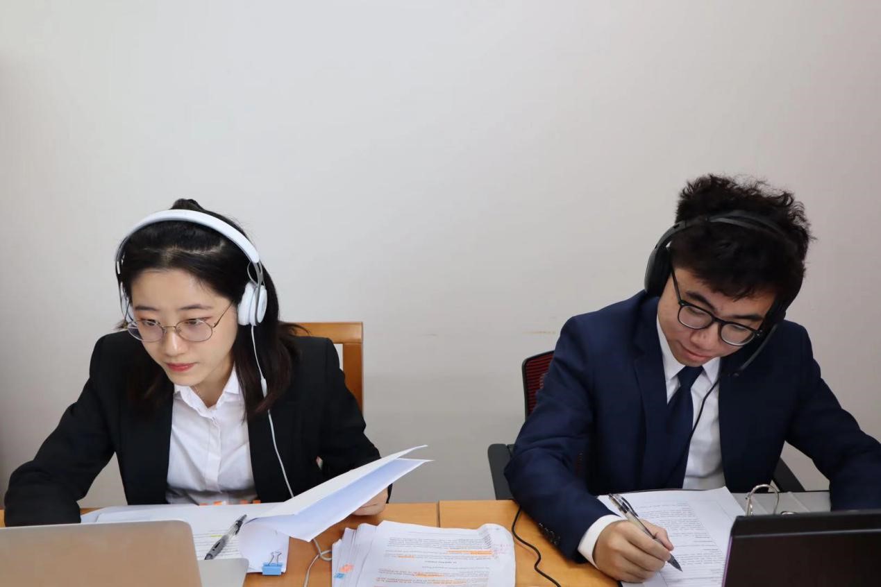 庭辩员付昱禎、赵汝航对阵德国杜塞尔多夫大学选手比赛图