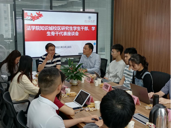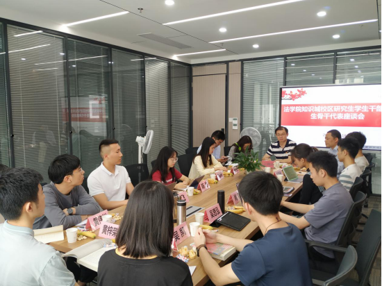 3月18日下午,我院在知识城校区进德楼908第二研讨室召开研究生学生干部、代表座谈会,法学院党委书记王则唐、副书记刘军、崔肖娜老师、辅导员刘运宇以及13位研究生学生干部、代表出席本次会议。本次会议由法学院党委副书记刘军主持。