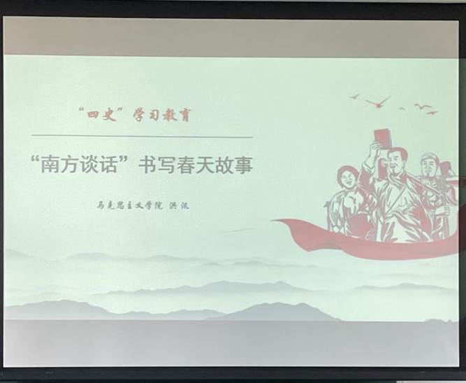 为了进一步在师生中深入开展“四史”学习,法学院于12月17日邀请马克思主义学院洪汛老师在南校区C座504教室开展了以“‘南方谈话’书写春天故事”为主题的“四史”宣讲会。法学院党委书记杨敏生出席,法学院部分师生参加会议。会议由法学院党委组织员余睿文主持。